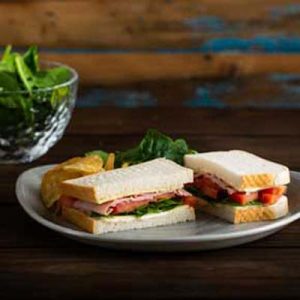 A golden baked white thick sliced white loaf, ideal as a sandwich carrier, can be served with ham or cheeses.