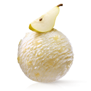The perfect pear sorbet. This inimitably creamy sorbet contains the full richness of ripe Williams pears. A puree made of 100% natural fruit provides the fragrant aroma, which is further enhanced by small pieces of pear. Perfect pear pleasure!