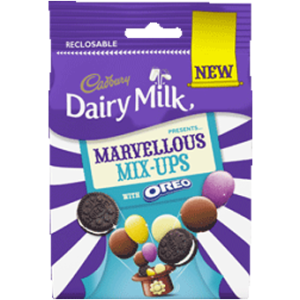 Marvellously mixed-up bags of yummy Cadbury Dairy Milk Pebbles, Cadbury White Buttons, Cadbury Dairy Milk Giant Buttons and adorable mini Oreos. Made for sharing.