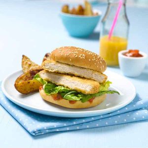 Chicken breast meat, chopped and shaped in a light, crispy breadcrumb.