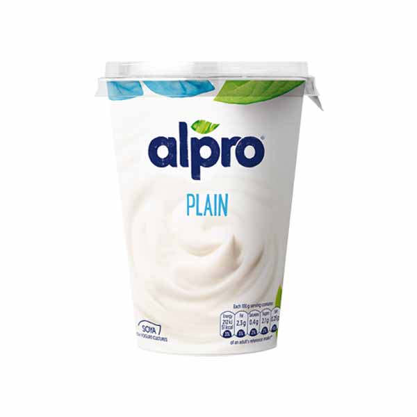 Soya base (Water, Hulled soya beans (10.7%)), Sugar, Calcium (Tri-calciumcitrate), Stabiliser (Pectins), Acidity regulators (Sodium citrates, Citric acid), Flavouring, Sea salt, Antioxidants (Tocopherol-rich extract, Fatty acid esters of ascorbic acid), Vitamins (B12, D2), Yogurt cultures (S. thermophilus, L. bulgaricus) .