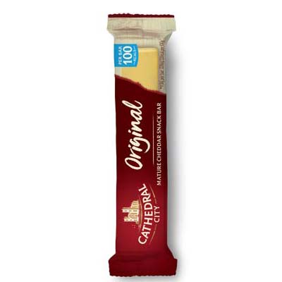 Mature Cheddar Snack Bar with the distinctive smooth, creamy taste of Cathedral City.