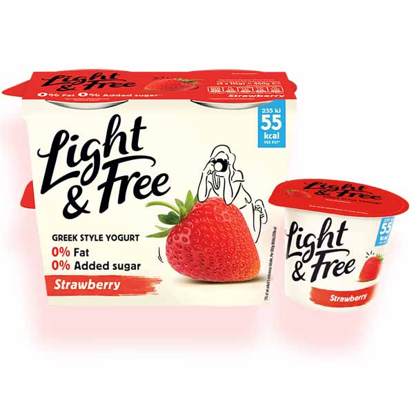 Yogurt (milk), Strawberry (12%), Oligofructose (fibre), Potato and tapioca starch, Modified maize starch, Stabilisers (pectin, carrageenan), Flavourings, Acidity regulators (calcium citrate, sodium citrate, lactic acid), Black carrot juice concentrate, Sweeteners (acesulfame K, sucralose), Vitamin D.