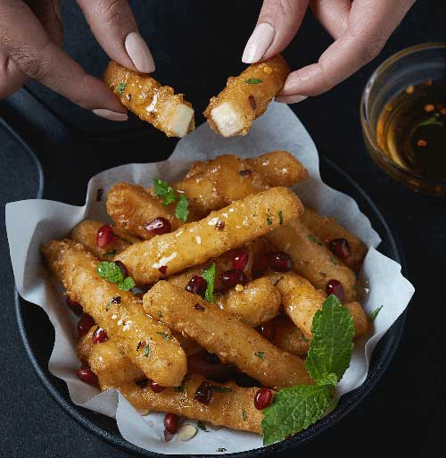 Our Halloumi cheese strips coated in a deliciously crispy parsley and red pepper tempura batter are the perfect addition to any menu.